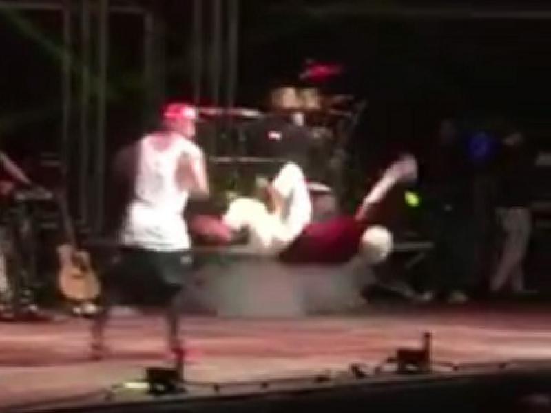 Cantor tentou fazer uma cambalhota durante sua apresentação em Itatiba, São Paulo, e acabou caindo no palco