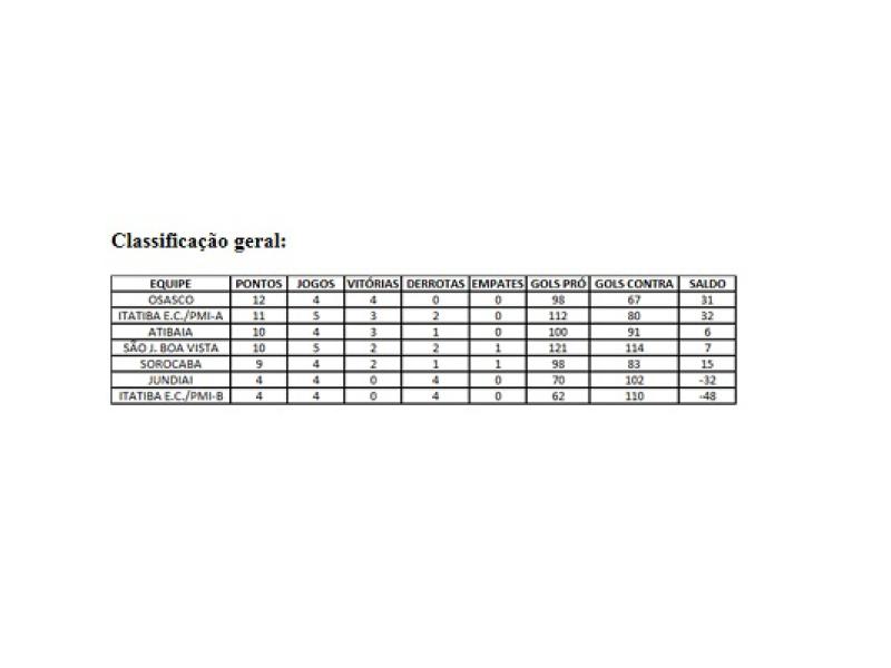Na última partida da tarde, a equipe do Itatiba 'A' jogou muito bem o primeiro tempo, vencendo pelo placar de 11 a 06. Após o intervalo, a equipe de Osasco conseguiu neutralizar os pontos fortes do time de Itatiba e acabou virando o placar e vencendo a partida por 20 a 18. Os erros da equipe Itatibense na segunda etapa ficaram constantes, o que determinou os contra-ataques para Osasco matar o jogo. Jogaram: Gava, Igor(4), Fabrizio, Felipinho, Diogo (3), Marcelo, Emídio (4), Ronaldo, Jonathan (2), Lima (2), Neto Leoni, Victor (1), Luisinho (2).