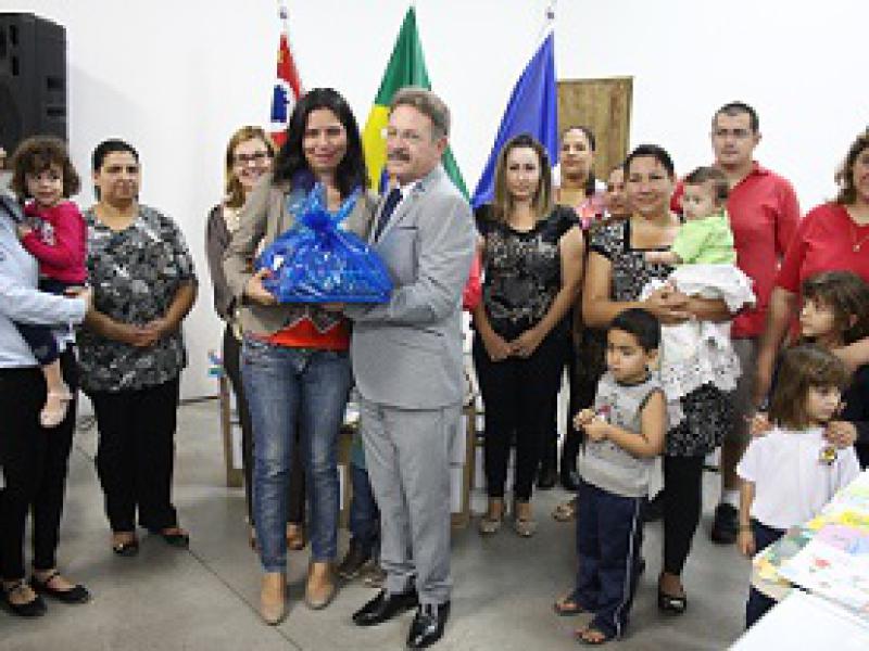 A Secretária da Educação, Profª. Fátima Polesi Lukjanenko também participou da entrega dos livros. “Os livros têm um lugar especial no processo pedagógico... É muito importante levar o mundo simbólico das palavras para nossas crianças desde que são bebês”, destacou a Secretária.