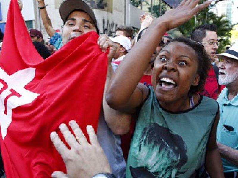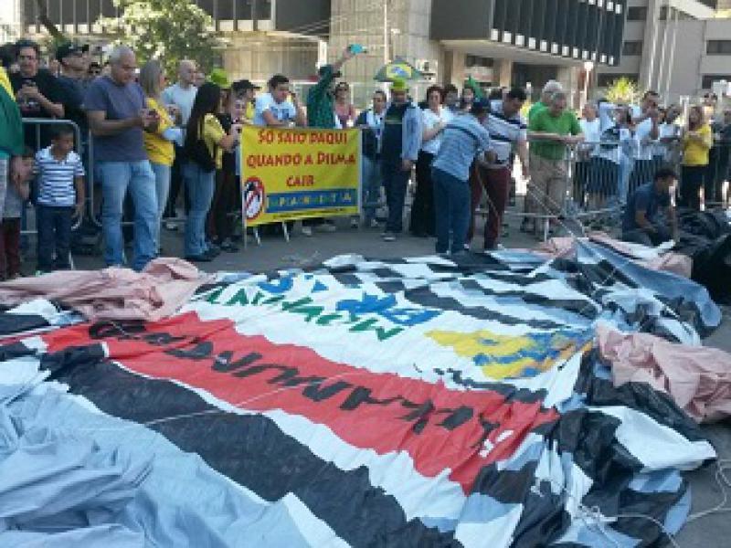 A Polícia Militar precisou fazer um cordão de isolamento para separar os dois grupos. Com ânimos acirrados, o grupo contra o boneco gritava "Não vai ter golpe" e chamavam os manifestantes de "fascistas". Com bandeiras do Partido dos Trabalhadores, eles pediam para o boneco ser desmontado.
