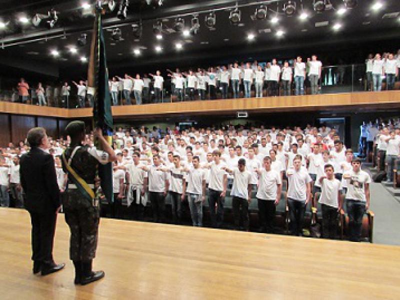 Cerca de 460 jovens dispensados do Serviço Militar de Itatiba neste ano de 2015 prestaram Juramento à Bandeira na última quarta-feira, dia 16 de setembro. A solenidade cívica foi realizada no Teatro Ralino Zambotto.