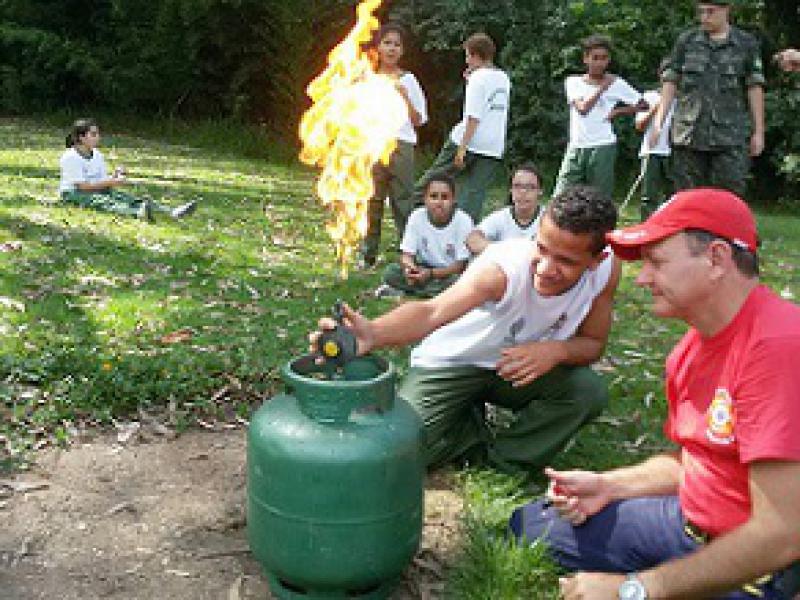 Entusiasmados, os Atiradores Mirins subiram no Caminhão do Corpo de Bombeiros, conheceram o seu funcionamento e equipamentos existentes, aprenderam como proceder e reagir em uma situação de vazamento em um botijão de gás de 13 quilos (gás de cozinha). “Todas as atividades realizadas proporcionaram a integração entre as crianças e os Bombeiros”, contou o Subtenente Beckenkamp.
