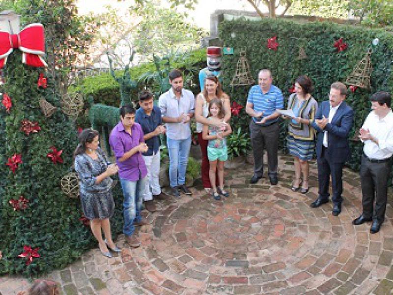 Antes de ser descerrada a fita inaugural da Casa com o Papai Noel aconteceu uma cerimônia de abertura no quintal do Museu Municipal.