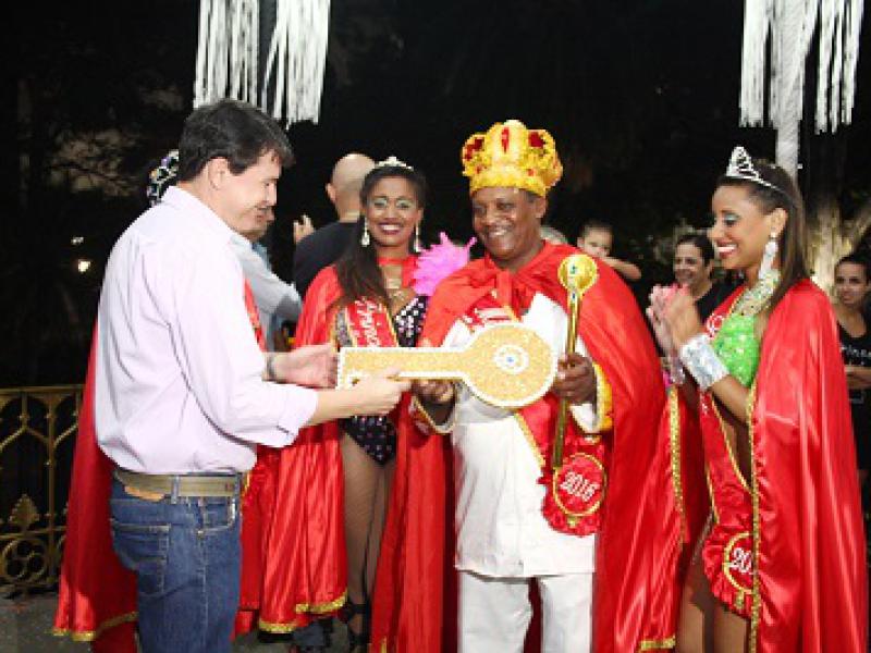 O Secretário de Cultura e Turismo, Luis Soares de Camargo entregou a chave da cidade para o Rei Momo Márcio Aristides da Silva