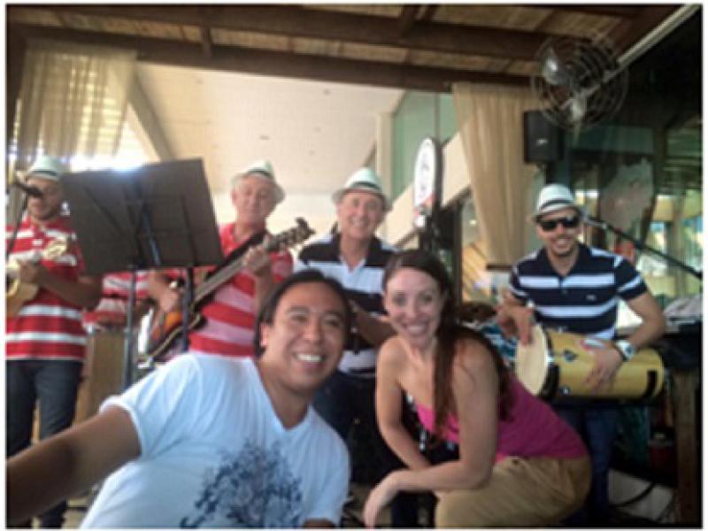"Os amigos Argentinos ficaram muito felizes com a visita, curtiram nosso prato tradicional e nossa caipirinha e até arriscaram alguns passos de samba, disse Chuia." Nas fotos: Iván Romero, Natália Franco (proprietária do Dona Tuin), Rubens (Chuia), Maria Ângela e Silvana Núnez. Numa das fotos, Iván achou engraçado o escrito em uma placa de um posto de gasolina, uma vez que em espanhol “borracho” é aquele que está embriagado ou que se embriaga habitualmente. Então, “borracharia” seria o lugar ideal para se ficar “borracho”. Nas fotos, também uma imagem do show e dos bastidores, no Teatro Bradesco, na capital paulista. (Fonte: Nosso amigo Chuia)