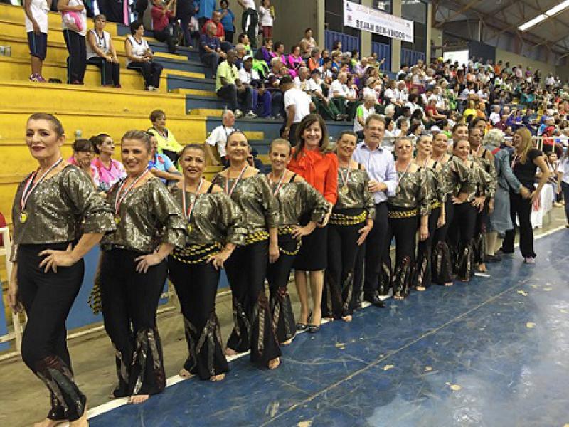 O time da Terceira Idade se apresentou no Ginásio de Esportes Roberto Polatti e ficou com a medalha de ouro. “...Foi muito emocionante acompanhar a apresentação, que realmente foi brilhante, e finalizar com o ouro não poderia ter sido melhor”, disse a Primeira-dama e Presidente do Fundo Social de Solidariedade, Profª. Cássia Helena Benaglia Fattori.