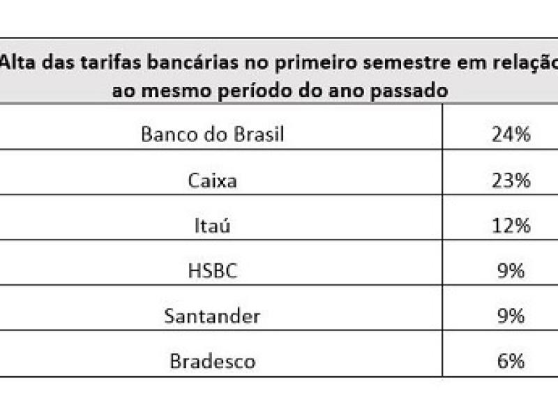 No primeiro semestre de 2016, as mensalidades dos pacotes de serviços de conta corrente subiram em média 12% em relação ao mesmo período do ano passado, segundo dados do Banco Central. Há alguns anos BB e a Caixa cobravam menos que os bancos privados por esses serviços, mas agora praticamente já não há mais diferença para concorrentes como o Bradesco e o Itaú. O BB, por exemplo, elevou o valor de seu pacote mensal padrão em 24% no primeiro semestre em relação ao mesmo período do ano passado, segundo estudo do JPMorgan. Já a Caixa fez um reajuste de 23%. A tabela abaixo mostra claramente a agressividade dos bancos públicos no reajuste: