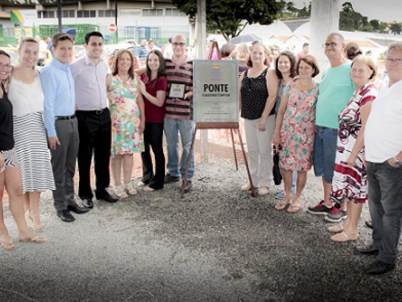 "A ponte carinhosamente carregará o nome do senhor Claudemir Tompson, que na ocasião foi homenageado por sua esposa, Claudete Alcantara Brasil Tompson, seus dois filhos, Leandro e Alessandro, e por outros membros da família que estiveram presentes.