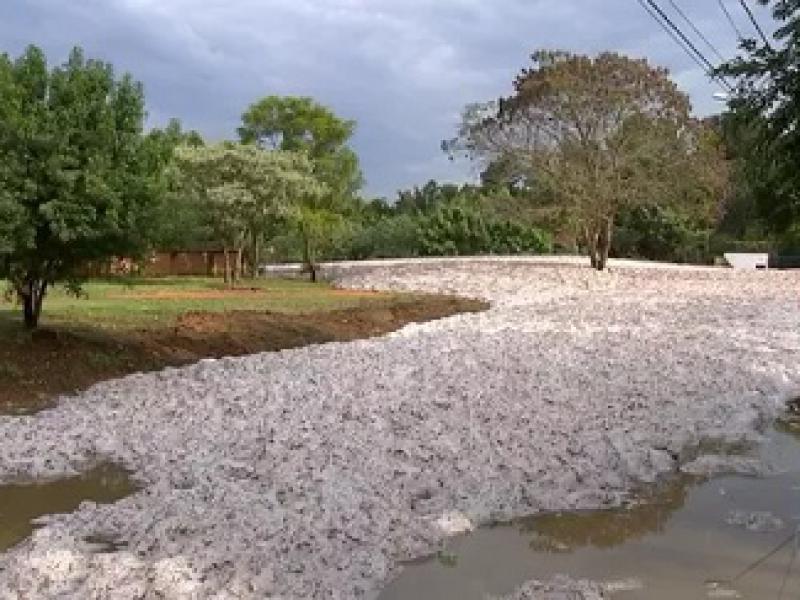 A cena foi flagrada logo pela manhã pelo morador da cidade que também tinha registrado a espuma na terça-feira (6). João Conti Neto conta que, assim que o sol saiu, a espuma secou e revelou o lixo que tomava conta da rua.