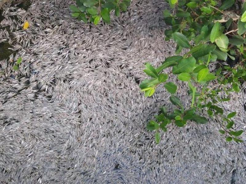 "Os pescadores informaram que a situação começou a se agravar no dia anterior quando tainhas e robalos apresentaram falta de oxigênio"
