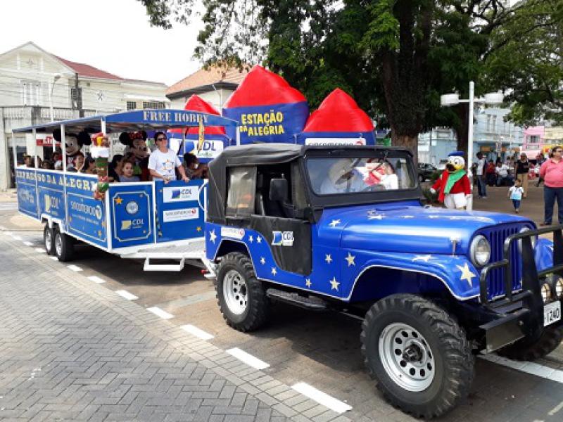 Com capacidade para até 20 pessoas, o Expresso da Alegria é transportado por um Jeep Willys, adquirido pela CDL e Sincomercio. O embarque do trenzinho acontece na Estação Alegria, no Parque da Uva. Menores só poderão participar do passeio acompanhado pelos pais. A programação está sujeita às condições climáticas.