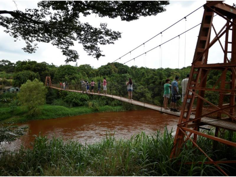 Seus olhos inchados observam o rio passando, bem diante de sua casa, em uma ponte suspensa que conecta a estrada regional com uma exuberante mata atlântica.