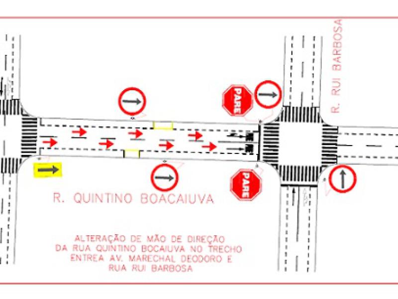Segundo a assessoria da Prefeitura Municipal de Itatiba, "A Secretaria de Obras e Serviços Públicos, a fim de melhorar a fluidez do trânsito, fará alteração na mão de direção de trecho da rua Quintino Bocaiuva entre as ruas Rui Barbosa e Marechal Deodoro, centro da cidade. Uma única quadra será alterada (segue mapa ilustrativo), já a partir de segunda-feira, 18 de janeiro.