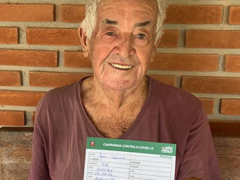 "A primeira faixa de atendimentos é a de idosos com 90 anos ou mais, começando pelos acamados, que foram vacinados pelas equipes da Secretaria da Saúde em suas casas nesta segunda-feira, 8 de fevereiro. É o caso da dona Anna Pereira de Oliveira, de 97 anos, moradora do Núcleo Residencial Pedro Fumachi e do senhor José Silvério, de 95 anos, do bairro Morro Azul (Foto). Os dois foram vacinados ontem e comemoraram.