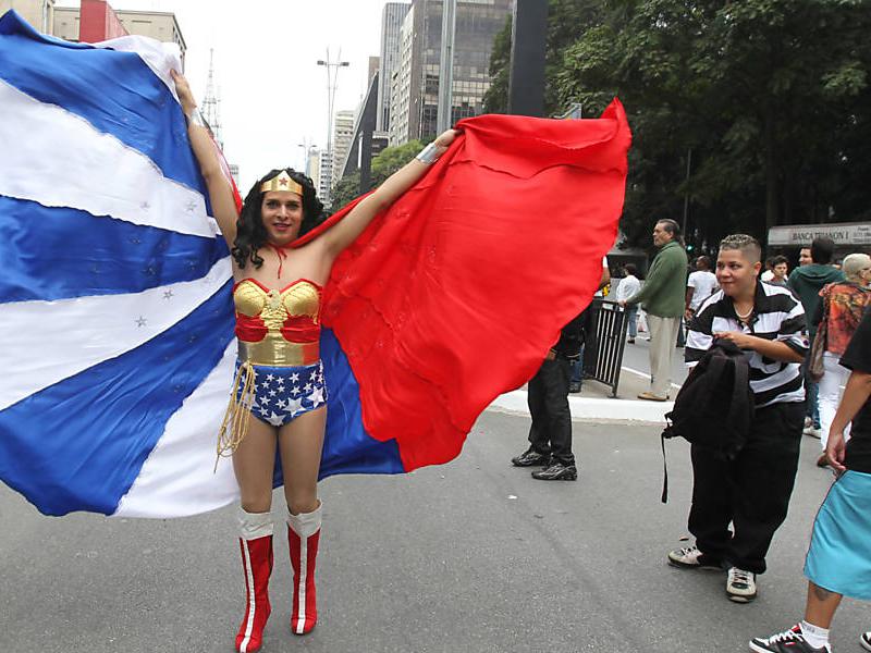 Perdida em meio à multidão enlouquecida da Parada Gay, a artesã Imperatriz Favola, 21, mostrou incomodo pelo fato da bandeira multicolorida do movimento LGBT ser semelhante a da sua cidade natal, a tradicional Cuzco, antiga capital do império Inca, no Peru. “Em Cuzco a bandeira é igualzinha. Isso não é bom” afirmou a tímida artesã que vive há dois anos em São Paulo. “Não combina”, disse a artesã.