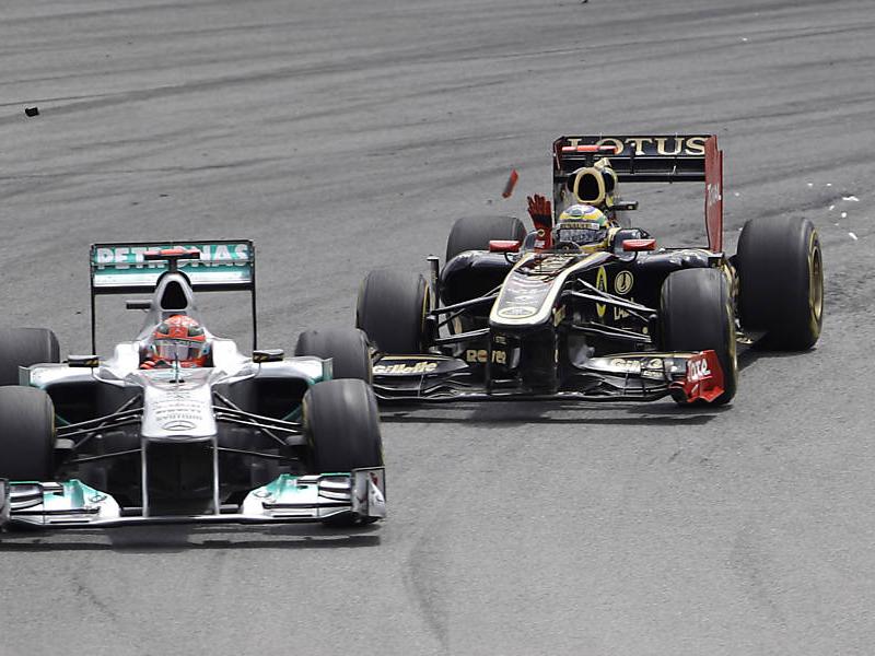Numa tentativa de defender a posição, Bruno Senna tocou o bico da asa dianteira na roda esquerda traseira do rival. Schumacher levou o carro com o pneu furado até a área dos boxes. Já o piloto da Renault continuou na pista (parou três voltas depois) sem grandes avarias no carro, mas foi punido com um drive-through.