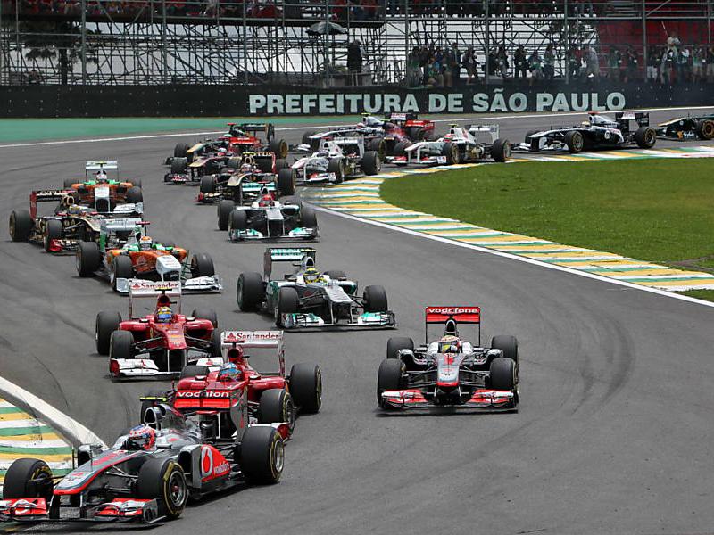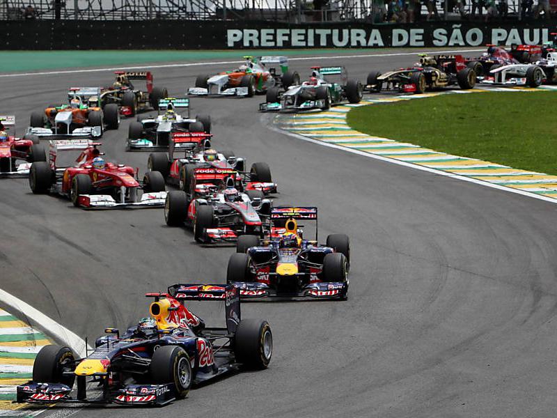 O GP Brasil iniciou sem chuva, de forma limpa e nenhum incidente. Vettel sustentou a primeira posição, seguido por Webber, Button e Alonso, que ganhou a posição de Hamilton (quinto). Massa também ganhou uma posição, passando para sexto. Bruno Senna manteve o nono lugar e Barrichello caiu de 12º para 20º.