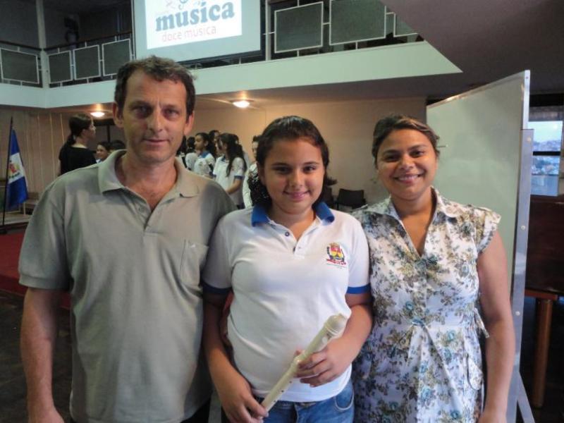 A aluna Caroline Catira Casadei, 11, também conta com o apoio dos pais Jeferson, 49, e Luciana, 34. “A Caroline está no projeto desde o início e gostamos muito eu ela participe. Além da disciplina e dedicação, no projeto temos a garantia de que ela ouve e aprende música de qualidade”, afirmou a mãe Luciana Catira. A família mora no Centro da cidade.