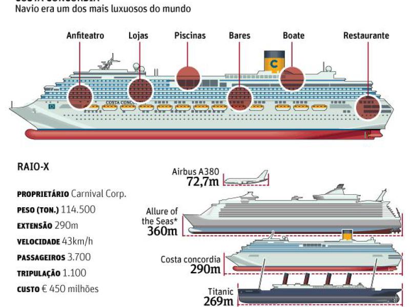A medida exata com a qual o navio está deslizando foi divulgada pelo analista Nicola Costagli, professor de Ciências da Terra na Universidade de Florença e encarregado de acompanhar a evolução da embarcação, que acrescentou que a proa se movimenta em maior velocidade que a popa, em até 15 milímetros por hora.