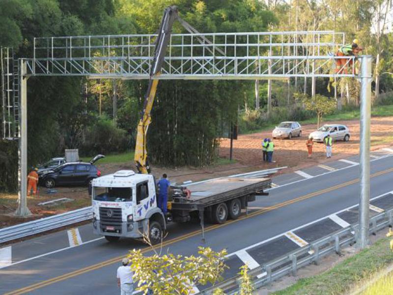 Na última segunda-feira, o trânsito da rodovia foi interrompido por cerca de 20 minutos para o içamento da treliça superior do primeiro pórtico do Sistema Ponto a Ponto, no km 77 (foto). A estrutura será a base para as antenas que farão a leitura das informações contidas nos tags instalados no veículo e gerarão a cobrança automática da tarifa pelo trecho percorrido.