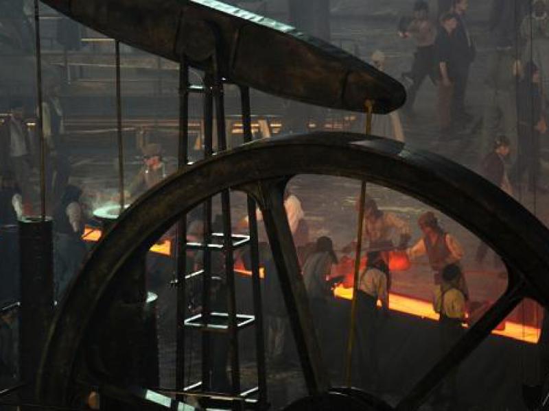 Em seguida, foi a vez de uma passagem obrigatória pelo capítulo industrial dos britânicos, através de uma fantástica transfiguração de cenário. Imensas torres de fábricas foram erguidas sobre o cenário anterior de fazenda. Um enorme anel olímpico foi forjado no solo e alçado, se encontrando no céu com os outros quatro e culminando com uma cascata de fogos.