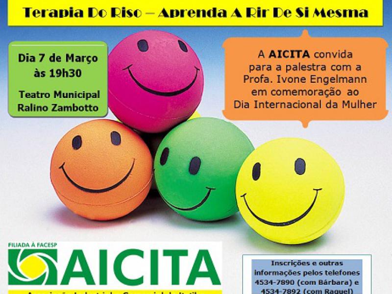 Em função do Dia Internacional da Mulher, comemorado em março, a AICITA (Associação Industrial e Comercial de Itatiba) promove no próximo dia 7, quinta-feira, palestra intitulada Terapia Do Riso – Aprenda A Rir De Si Mesma