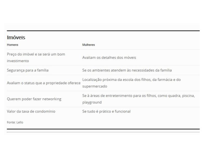 Isso acontece porque boa parte das mulheres está mais próxima das tarefas domésticas e, portanto, serão muito mais criteriosas. Além de darem mais valor à beleza do imóvel.