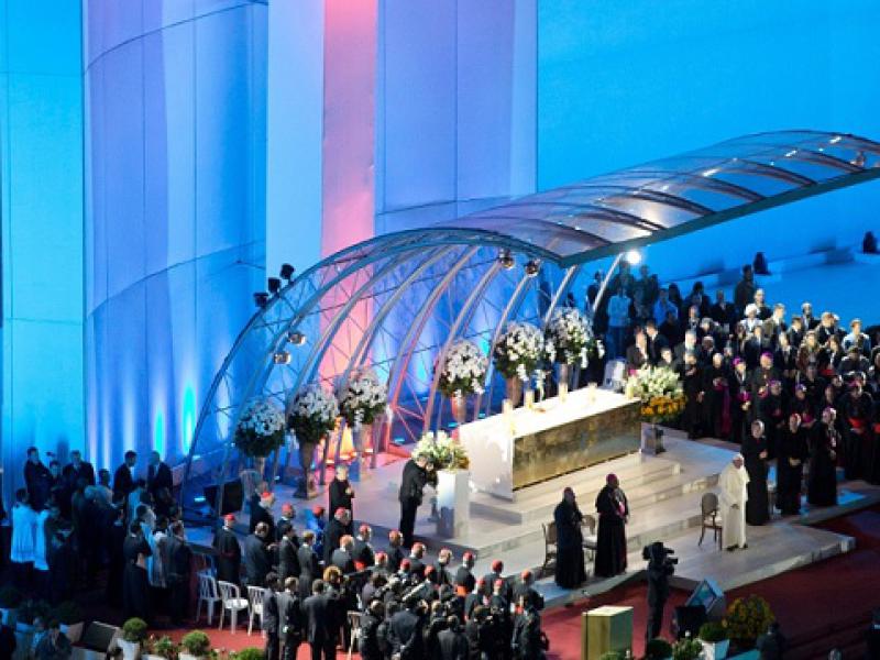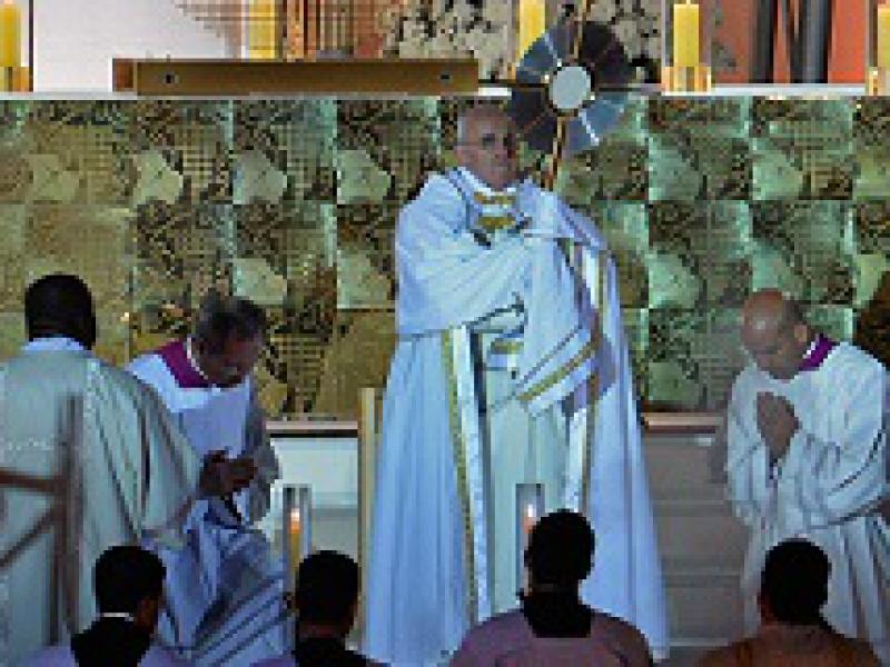 Durante a missa celebrada na Catedral Metropolitana de São Sebastião para mais de mil bispos, sacerdotes, religiosos e seminaristas,o papa Francisco lembrou de madre Teresa de Calcutá e chamou os líderes da Igreja Católica a irem até as periferias, onde as pessoas "têm sede de Deus".