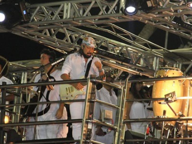 Por onde o trio abarrotado de convidados -- entre eles o ator Thierry Figueira -- para, Bell recebe elogios e homenagens. Sempre sorrindo, mesmo após passar mais de 10 horas tocando, ele repete: "Estou muito feliz".