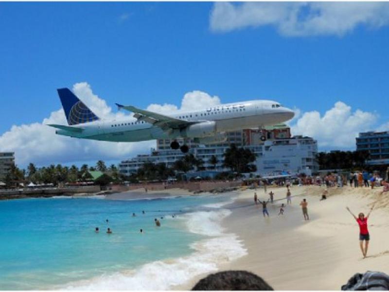 Localizado na ilha de Sint Maarten, no arquipélago das Caraíbas (Caribe), o aeroporto Internacional "Princesa Juliana" é conhecido pela pouca distância entre a praia e sua pista de decolagem e aterrissagem. Aviões de grande porte passam a poucos metros dos banhistas que estão às margens de Maho Beach. É um momento espetacular e inesquecível aos têm a oportunidade de presenciar a cena. Já os ‘conectados’ podem aproveitar para tirar fotos e gravar vídeos para postarem nas redes sociais e garantirem uma lembrança inesquecível e única do momento.