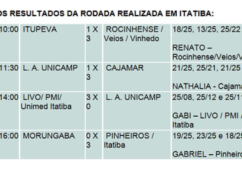 Resultado final: Itatiba 3 x 0 L.A. Unicamp (25/08, 25/12 e 25/11), duração do jogo: 54 minutos.