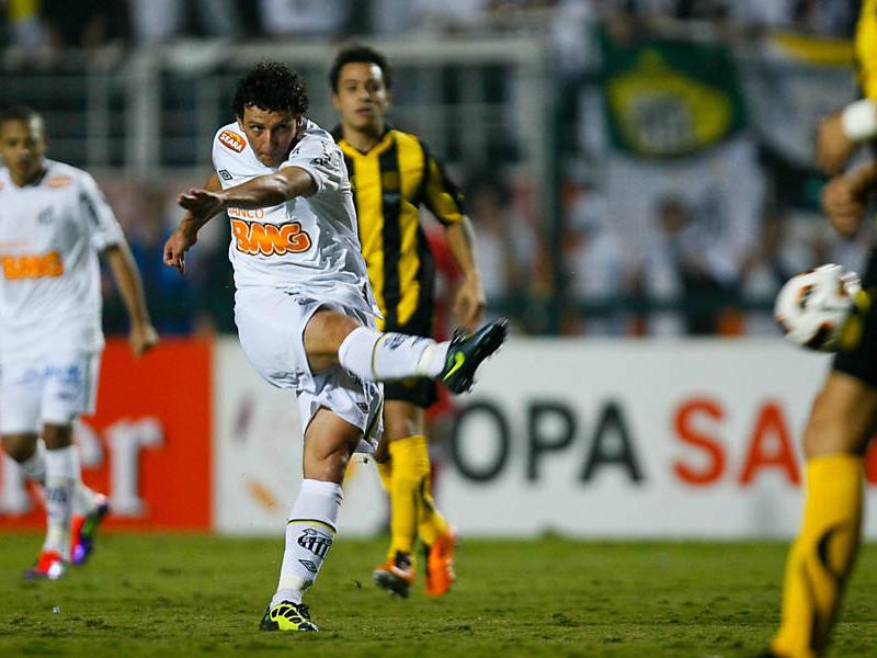 O Santos manteve o jogo sob controle, mas criou pouco e teve dificuldades para finalizar com qualidade. Mérito também da zaga uruguaia, que desarmou Ganso, Elano e Neymar muitas vezes com pressão e atenção.