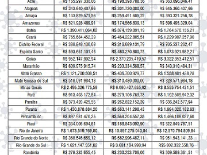 Por sua vez, os R$ 7 bilhões destinados aos estados para saúde e assistência serão divididos de acordo com a população de cada um (critério com peso de 60%) e com a taxa de incidência da covid-19 (peso de 40%), apurada no dia 5 de cada mês. Os R$ 3 bilhões enviados para os municípios para esse mesmo fim serão distribuídos de acordo com o tamanho da população.