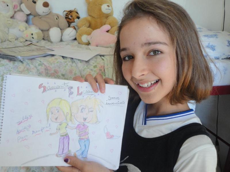 Os desenhos de Luana são conhecidos de toda a turma da escola. Em gibis, a menina conta a história da família, da escola e dos amigos. “Ela sempre faz um gibi, ou um desenho, para contar sobre as novas aventuras. Ao final, ela não costuma guardar, então eu compro os gibis e guardo. Quando ela ficar famosa terei muitos, mas não venderei para ninguém porque eles não têm preço”, contou Laura Barbeiro de Paulo, 14 anos, a melhor amiga da desenhista.