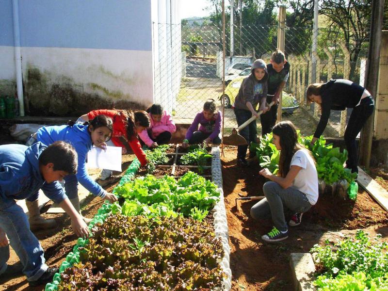 Na hora de montar a horta da escola, garrafas pet e taquaras velhas se tornaram canteiros e minhocários em mais de 20 m² de cultivo e cuidado com a natureza. “A escola está localizada em uma área rural e o objetivo desta iniciativa é promover a conscientização ambiental, valorizando a agricultura”, afirmou a diretora da escola Joelma Bardi.