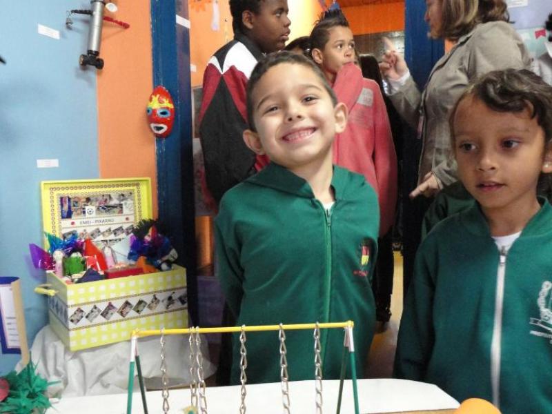 Fazem parte da apresentação criada pelas crianças, móbiles, brinquedos, bonecas de pano e de lata, carrinhos de caixas de papelão, maquetes de jardins e parquinhos. Há também um livro gigante feito à base de lâminas de papelão e ilustrado com pinturas de personagens folclóricos. Instrumentos musicais feitos com muita criatividade e materiais recicláveis enriquecem o ambiente, que reúne 140 pinturas e desenhos expostos em banners e mais de 150 peças tridimensionais.