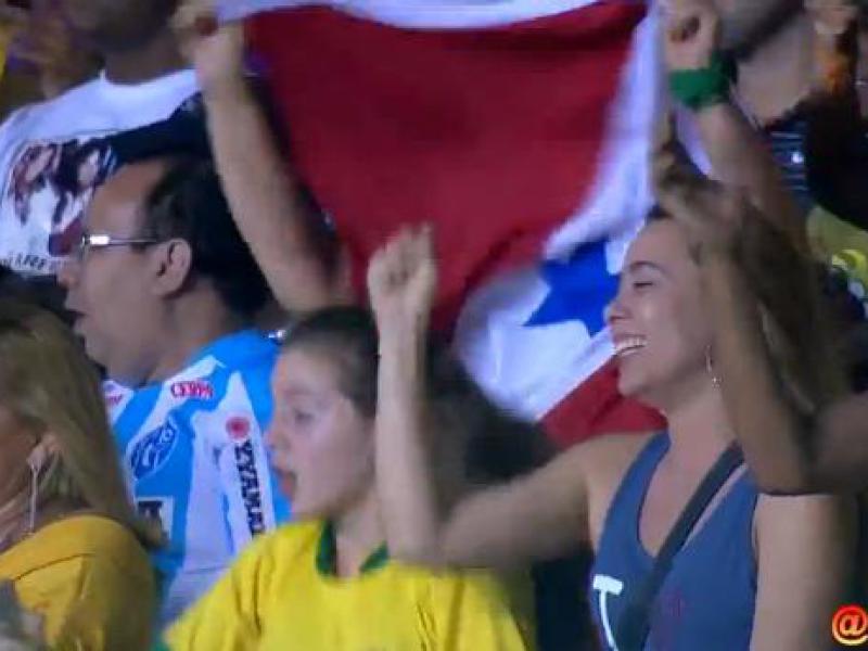 A torcida brasileira de 45.000 pessoas para o jogo Brasil x Argentina em Belém, no Pará, emociona ao cantar o hino do Brasil