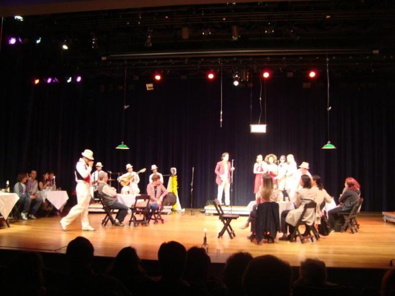 Parte dos expectadores foram convidados a subir ao palco, em um cenário de botequim do início do século, e se sentar às mesas enquanto assistiam à vida de Noel Rosa ser apresentada ao tom da famosa rádio brasileira de antigamente em um musical envolvente e emocionante.