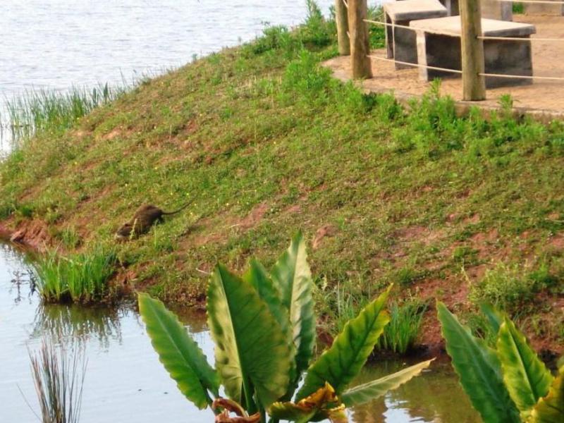 Não foi necessário muito tempo para que pudéssemos ver alguns representantes da fauna local, a qual provavelmente ainda se encontra em processo de aquisição de equilíbrio ambiental, mas o primeiro que avistamos foi um ratão-do-banhado (Myocastor coypus), o segundo um filhote de ratão-do-banhado, depois mais dois ratões da mesma espécie e o Edison observou um mergulhão. Nada das capivaras.