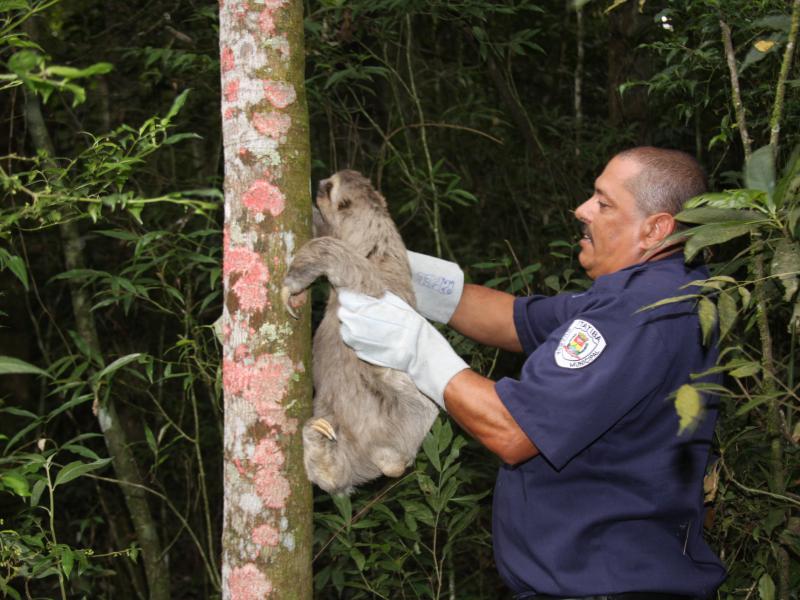 Os GMs foram chamados pelos moradores. “O bicho preguiça estava em uma árvore cercado por cachorros que latiam muito. Os moradores notaram o visitante e nos chamaram”, afirmou o GM Rafael Affonso Silva, que atendeu à ocorrência. Como estava saudável, o animal foi levado pela Guarda à mata próxima ao local onde foi encontrado. “Fazemos isso para que o animal possa voltar para seus filhotes e parceira. Se o levarmos para longe, ele não conseguiria voltar. Quando o bicho não está saudável o levamos para tratamento, mas não era o caso. Esse já estava apto para voltar para a mata”, explicou.