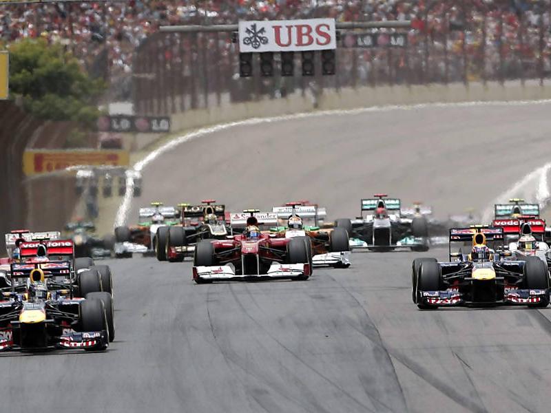 O GP Brasil iniciou sem chuva, de forma limpa e nenhum incidente. Vettel sustentou a primeira posição, seguido por Webber, Button e Alonso, que ganhou a posição de Hamilton (quinto). Massa também ganhou uma posição, passando para sexto. Bruno Senna manteve o nono lugar e Barrichello caiu de 12º para 20º.