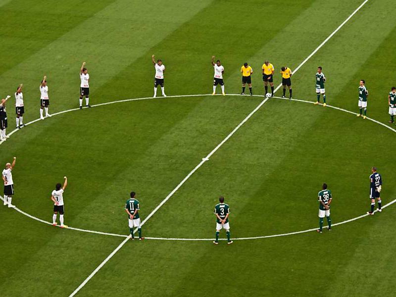 O domingo, porém, começou triste para os corintianos. O ídolo Sócrates, de 57 anos, faleceu durante a madrugada, em São Paulo, vítima de um choque séptico. O ex-jogador foi homenageado pelo Timão antes da partida no Pacaembu com uma faixa colocada no gramado com uma frase dita pelo craque: "O Corinthians não é um time e uma torcida. É um estado de espírito". Crianças formaram o número 8 no campo e receberam a equipe com o braço direito levantado e o punho fechado, comemoração característica do "Doutor" em suas comemorações. O gesto foi repetido pelos titulares corintianos durante um minuto de silêncio.