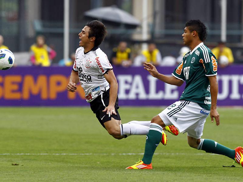 A empolgação dos mais de 34 mil corintianos que lotaram o Pacaembu se transformou em nervosismo para o Timão. A pressão que a equipe tentou impor nos primeiros minutos não surtiu efeito diante de um Palmeiras bem posicionado e paciente. A velocidade aplicada pelos alvinegros foi controlada com faltas simples que impediram qualquer aproximação perigosa. Em cinco minutos, foram cinco infrações e nenhum trabalho para Deola.