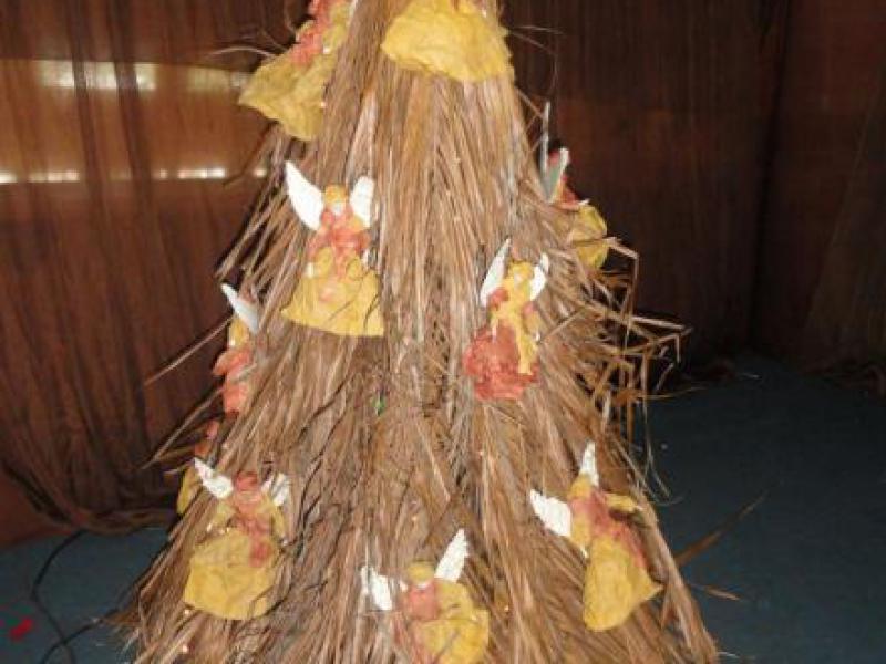 3º Lugar - SIBES – Árvore de garrafa pet e anjinhos de buxa vegetal
