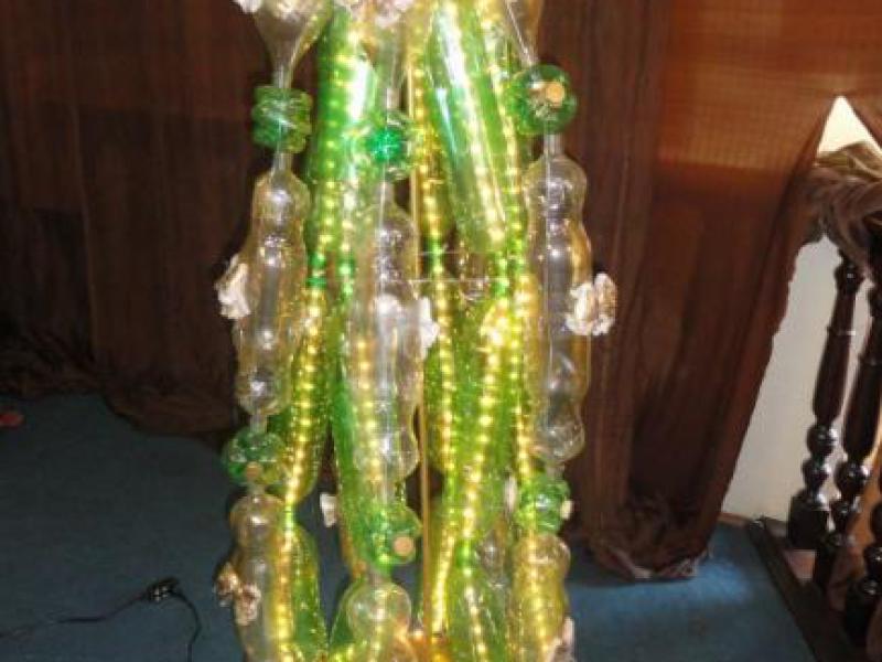 8º Lugar - Elisabeth Cassaro R. Marques – Árvore de garrafa pet e laço de sacola plástica.