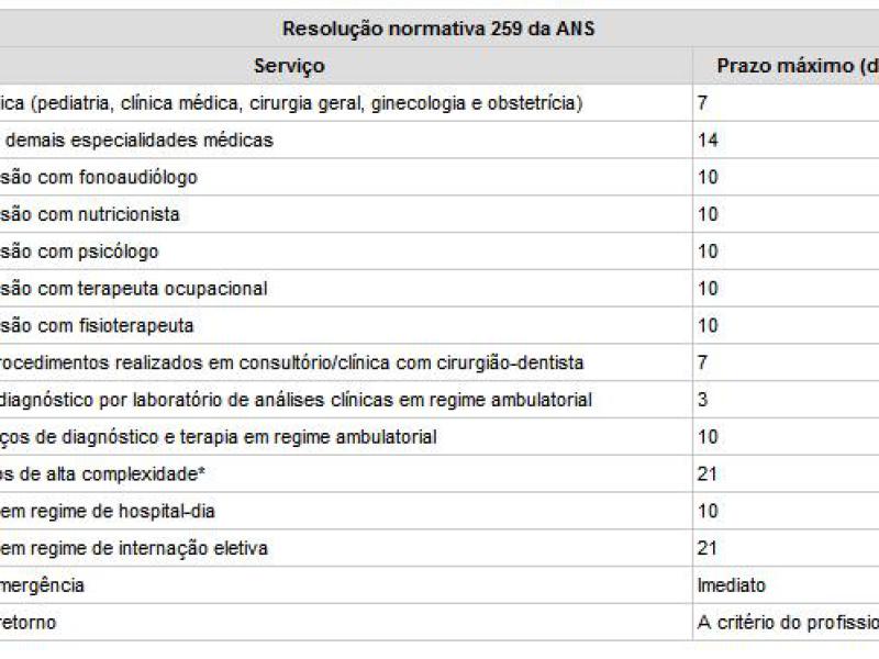 Além do prazo de sete dias para consultas nessas especialidades, há ainda o prazo de três dias para serviços de diagnóstico por laboratório de análise clínica em regime ambulatorial, 21 dias para procedimentos de alta complexidade, entre outros.