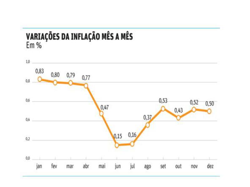 Em dezembro, o IPCA ficou em 0,50%, pouco abaixo do 0,52% de novembro.