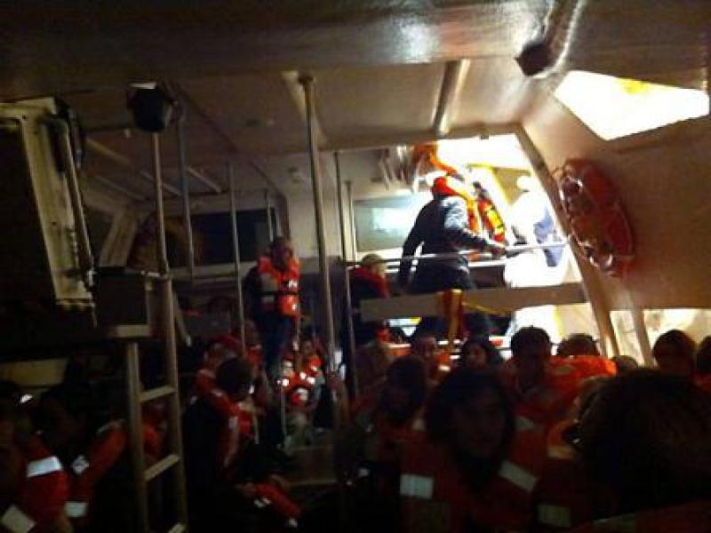 A Guarda Costeira chegou a informar que "os passageiros não corriam perigo" e eram retirados em botes salva-vidas do navio Costa Concordia. Porém, ao retirar os últimos membros da tripulação uma fenda se abriu, causando vazamentos internos.