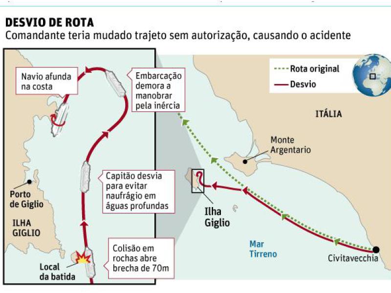 No entanto, segue a polêmica em relação à atuação de Schettino, que, segundo todos os indícios recolhidos durante as investigações, realizou uma "manobra equivocada" ao se aproximar cerca de 150 metros do litoral da ilha de Giglio na noite do acidente.