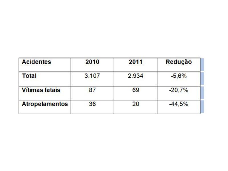 Redução do número de atropelamentos também foi significativa e chegou a 44,5% no comparativo 2010-2011